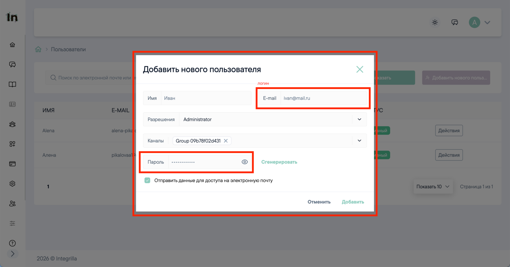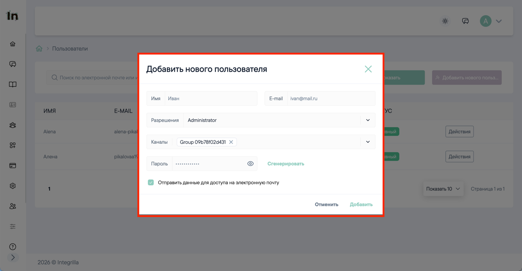 Пройдите регистрацию в сервисе Integrilla, подтвердите свою почту и зайдите в личный кабинет.