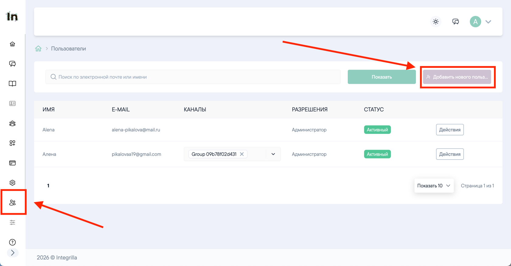 Для подключения интеграции перейдите в раздел «Интеграции» в левом меню.